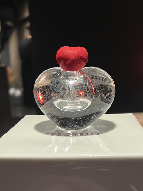 ハートの器にハート型の料理。そっと摘んで口を閉じて食べるとさっぱり美味しい一品。スタートのインパクト大!!