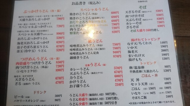 扶養家族その①は散々悩んだ挙句、スペシャルぶっかけうどん(温) をオーダーです