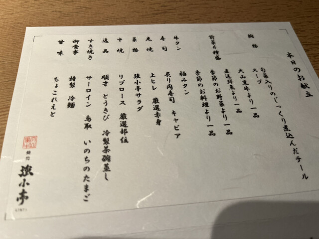 お肉はもちろん、前菜から途中の箸休めまでとにかく全てが美味しかったです。立地も銀座シックスから近く、アクセスも良く、クオリティーに対し、めちゃくちゃ高いわけではないのでぜひまた大事な機会にご利用したい思います。