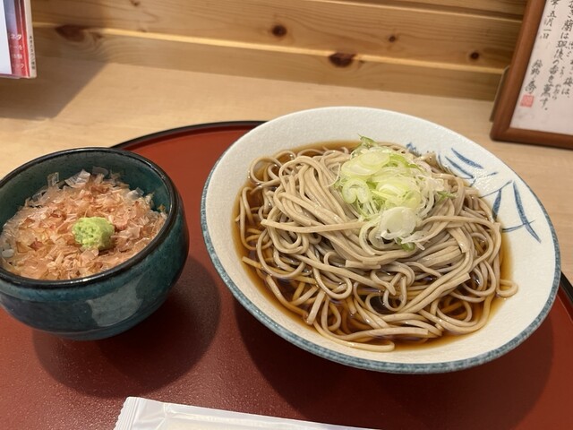 最近始まったばかりの季節限定「すだちそば」を推されるもの、平日限定のそばとわさび飯をいただくことに。
