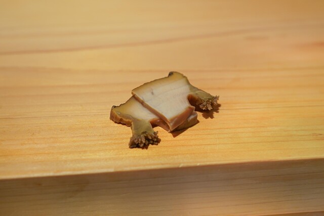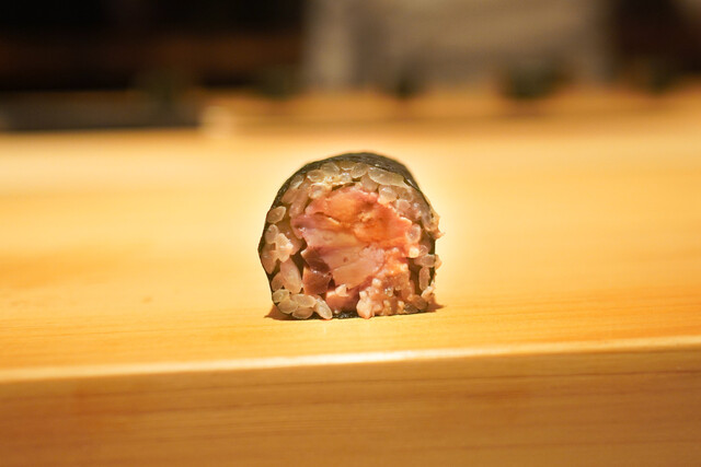 夏より冬の方がちょっと強いしゃりになるのだが、以前としゃりはちょっと変った。より米粒が大きくなり、お米の粒感がすばらしい。しゃりがかなり小さいのが特徴なのだが、それでもしゃりは存在感を主張する。