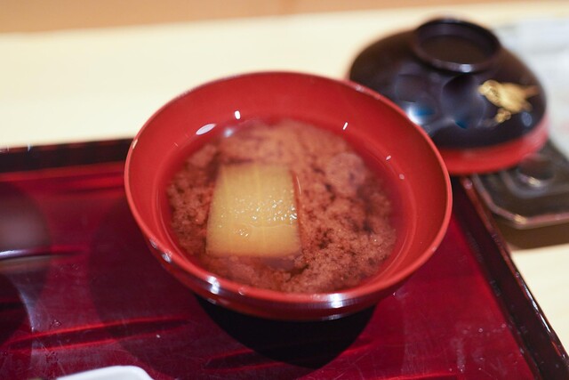 松茸と赤甘鯛、焼いて炊いた長芋のマグロだしお椀