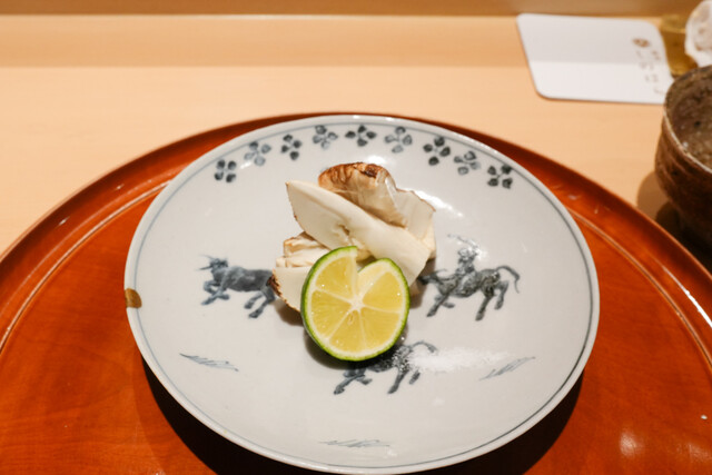 鯛、岩手の松茸、柚子、マグロ出汁のお椀