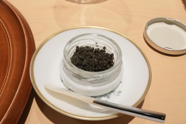 うに、トラフグの煮こごり、キャビア(追加)