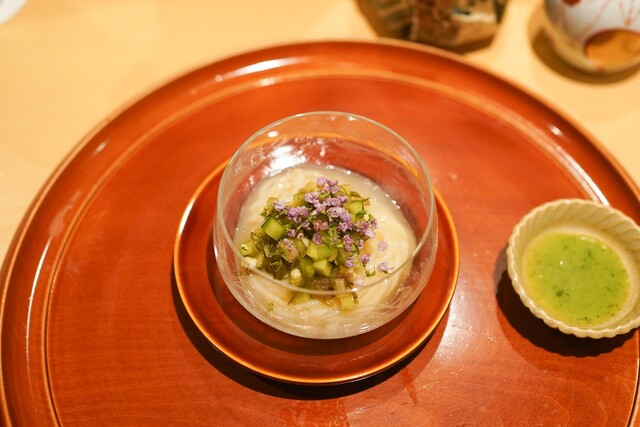 今、和食で一番行きたい人が多いお店と言って過言でない。味の良さだけでなく、魅せる料理はすばらしい。接客もとても優れていて、ここに来るといつも楽しい気分になる。今回は6月に入り、メニューが変わり、鮎を中心に夏らしくなった