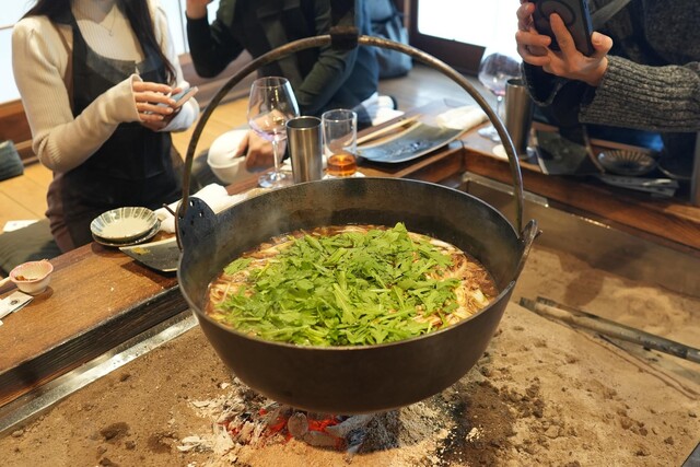 猪鍋(赤味噌 牛蒡 蕪 蒟蒻 なめこ 里芋 豆腐 葱 春菊 大根他)