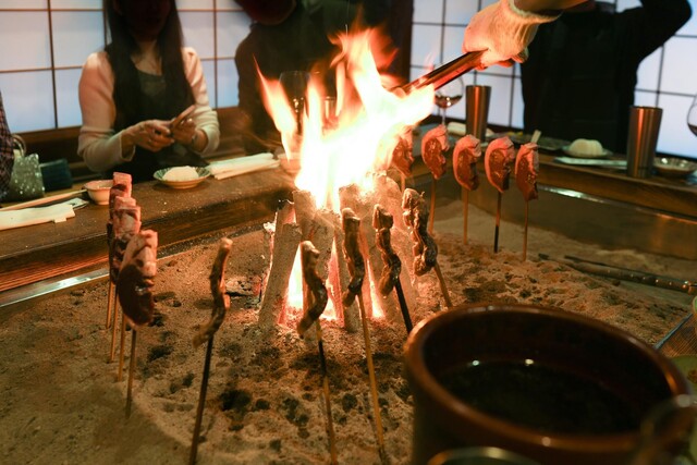 冬の柳家、やっぱりジビエの炉端焼きはおいしい、いのししと熊の美味しさは格別。それにワインがリーズナブルに楽しめる。ワイン好きにはたまらない。この日は10人で8本(2人飲まなかったので一人一本)結構な量を飲んだ。