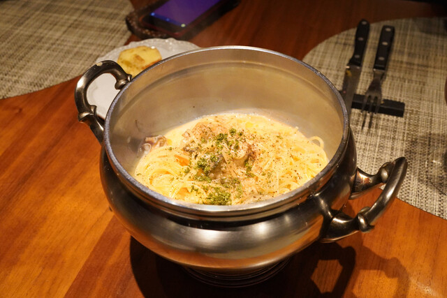 最初のブリニ、キャビアも美味しいがしっとりした生地の美味しさがたまらない。前回から加わった自家製パンもとても美味しい。定番の赤海老のパスタ、この海老からでる濃厚なソースこれがまたたまらない。上陸作戦を何回も慣行したい