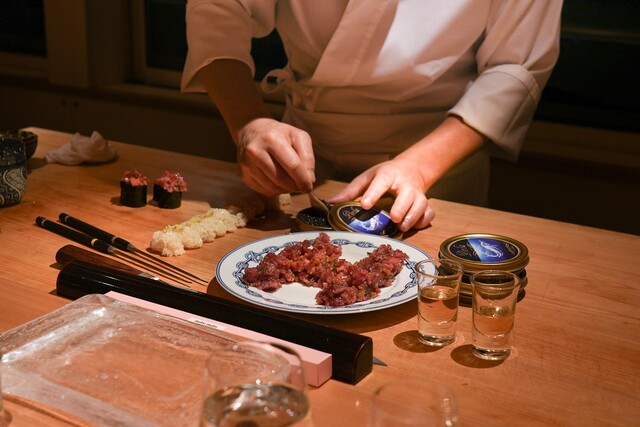 うにまぐろかまご飯に黒トリュフ