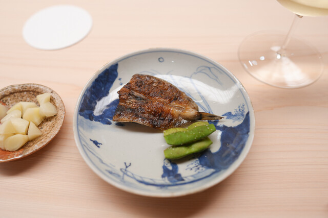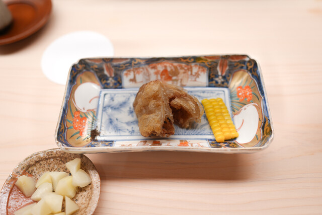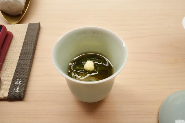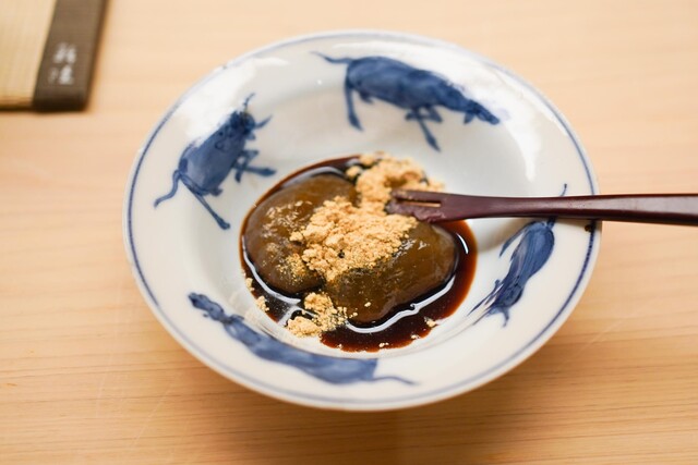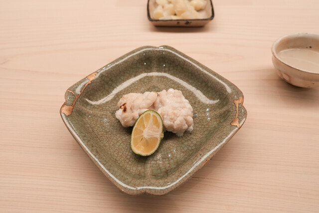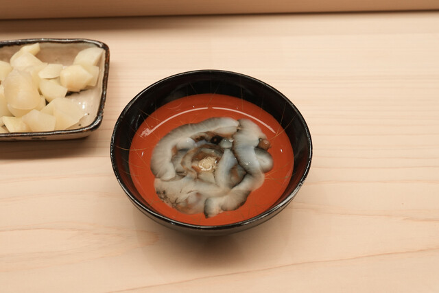 ◇ほっき貝の生姜醤油炙り、七味と一緒に