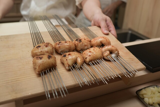松茸とかんぴょうシャリの間にトロを挟んだご飯