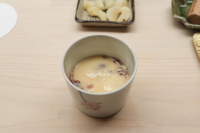 いくらをこしたものと舞茸を加えた茶碗蒸し