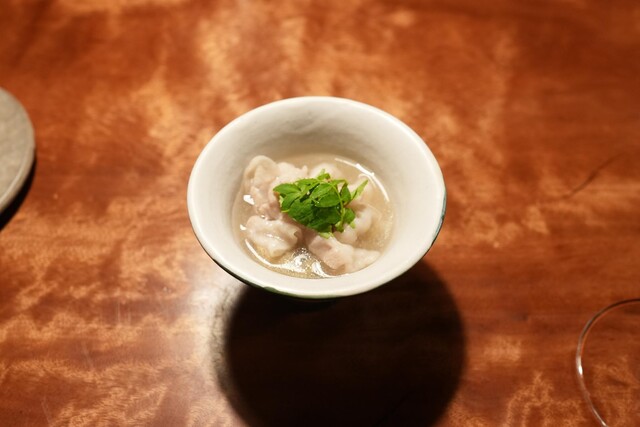 ◆手打ちそば、ブロッコリーをすったソース、3日寝かせたフグ、キャビア