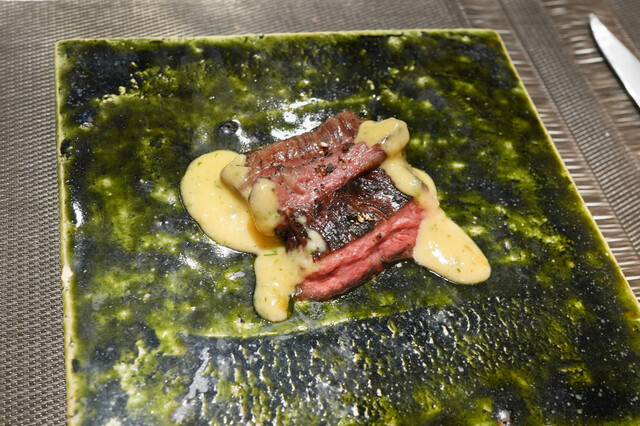 日本の食材を使い、素材を生かした味付けでどれもうなる料理をだしてくれる。焼きすっぽんのスープはすばらしい味だった。和の食材、しかもすっぽんからの出汁だけなのに何処なくフレンチ感がする。ふぐの白子の一品もフレンチ的にまとめられすばらしい味わい。そのまま食べる河豚の白子もいいが、トリュフが加わり絶妙のフレンチになっている。