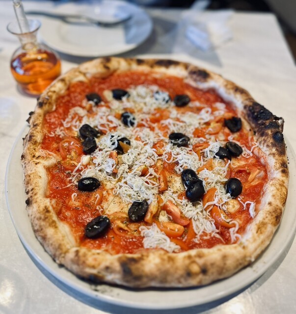 めっちゃ美味しい!シラスにオリーブをトッピングしました。口に入れるととろけるような生地とふわふわのシラスとトマトソースがマッチしていてめっちゃ美味しかったです。シラスのピザは絶対頼んだ方がいいです。ピザのメニューが豊富だったので色々食べるために次回は4人くらいで夜に行きたいと思います。