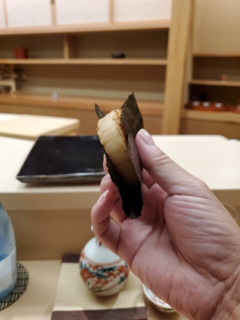 64900円 飲み物代金込み。すぎたには及ばざるがごとし。今回も素晴らしいラインナップでした。いただいたものは以下となります。銀杏気仙沼のたこ苫小牧のマツカワガレイとエンガワ気仙沼の鰹漬け穴子の茶碗蒸し鱈白子あん肝と胡瓜の奈良漬け太刀魚帆立貝の磯辺焼き以下は握りで小鰭真鯛さわら漬け春子大間の鮪、中とろ大間の鮪、大とろあじしゃこぶり煮蛤バフンウニあさりのお椀穴子、ツメでかっぱ巻たまご