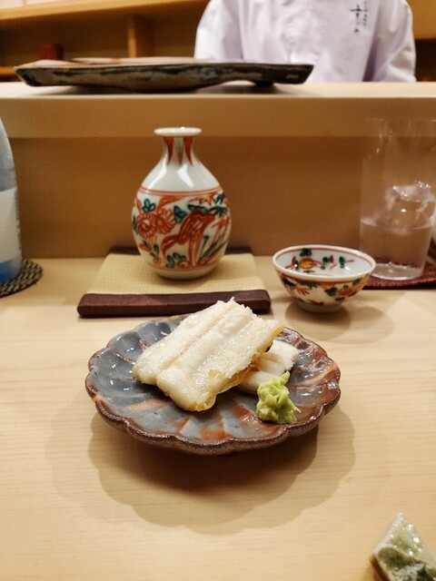 62300円~飲み物代金込み。とろける魚の舌触りフワッと溶けるシャリとが混じりあってのど越し。良い魚を仕入れてるだけではこのまろやかな口どけはあり得ないです。温度感も素晴らしいです。すぎたには及ばざるがごとし~さすがです。お客さんへのお気遣いホスピタリティ毎回感動です。日本一のお寿司屋さんと言われているのに全く驕りが無いです。いただいたものは同行者投稿より。枝豆千葉県 黒鮑青森県 鮃とエンガワ北寄貝炙り焼き 七味唐辛子佐島 たこの柔らか煮鮑の冷製茶碗蒸鮑肝の醤油漬け筋子の味噌漬け太刀魚塩焼き、大根おろしと酢橘帆立貝の磯辺焼き穴子の白焼き以下は握りでしんこ2枚付けしんいか真鯛小いわし春子くろむつえぼだい鮪 大とろあじいくら軍艦巻小柱軍艦巻天草 アカウニあさり出汁椀穴子 ツメと塩たまご