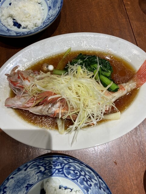 後最後のきんきの荷物はこれはファファでトロける身と優しい味つけにたっぷりなシャキっとネギが相まって白飯にかけて食べるとこれは本当に逸品‼️美味しかった過去1美味しいキンキの煮付けでした♪もう中華とは思えないほど和に近い素材の良さと出汁が感じられて良かったです。でも味はしっかり中華なんです♪いゃ〜この日も美味しかったです♪♪♪♪♪♪♪♪♪♪