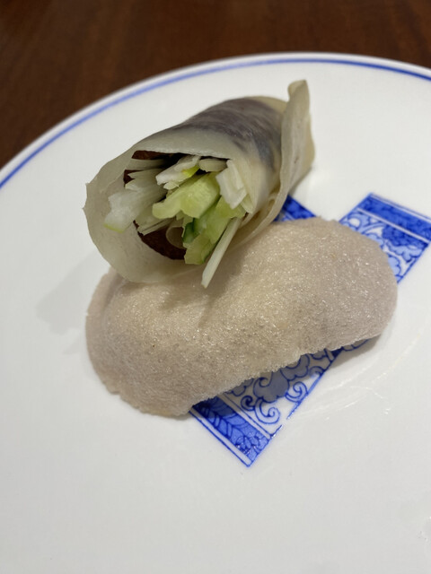 いゃ〜前菜から最後のデザートまで最高でした前菜の紹興酒で漬けたつぶ貝とマテ貝も良かったけど焼豚も秀品!後の海老の味の餡掛けやフカヒレの清湯スープもさっぱり和風な感じで良かったです!その後の北京ダック‼️そして上海蟹の味噌がたっぷり入った餡掛けは本当にやばかったです