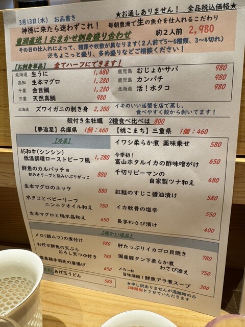 この日はワイン好きの友達と美味しいもの食べに行こうって誘って。なんも予備知識無しで連れてったのですが「やばい!この刺し盛り!!!」って最初からヒートアップ!