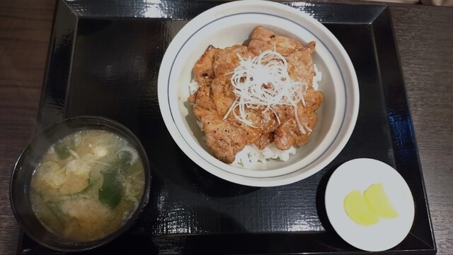 合い盛り丼のお肉は…豚バラ肉と豚ロース肉が半々に乗っているので食べ比べ出来ます〜楽しい♪温玉もオススメ!!とろ〜り幸せ✩