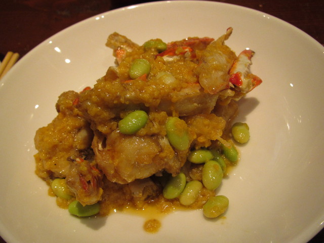 活渡り蟹と家鴨の卵の塩漬けの炒め