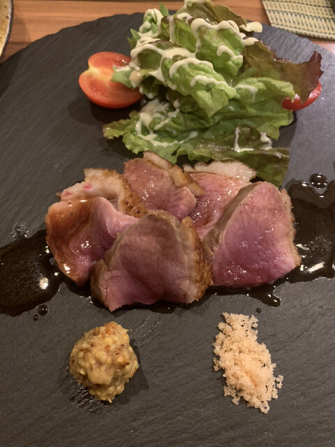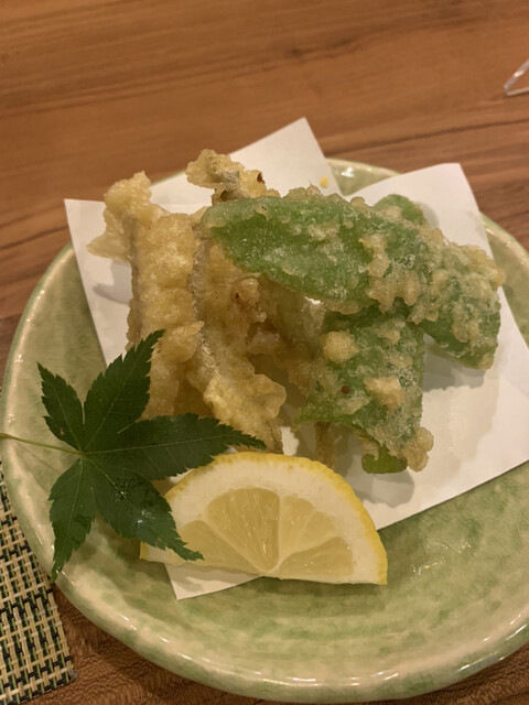 天ぷらは塩で、河内ガモは良い火加減で食べれる❣️