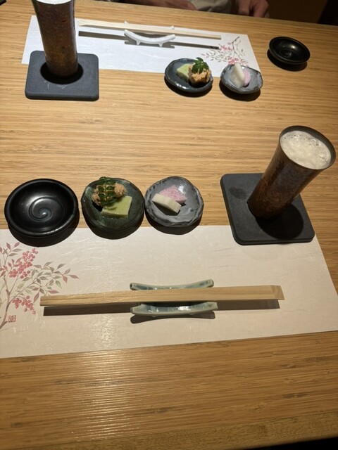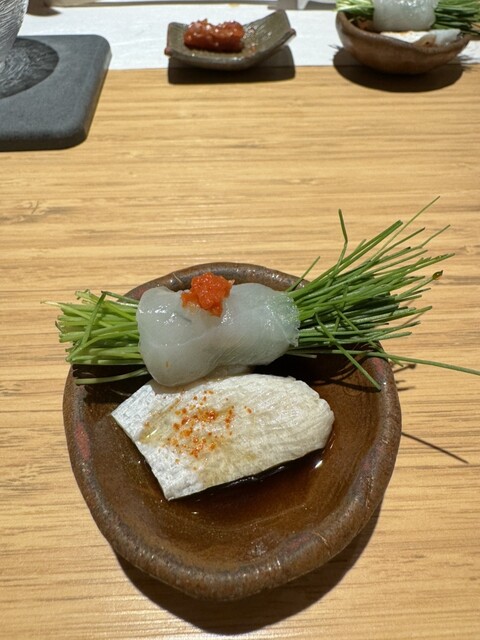 蒸し鮑は、肝醤油が出てきます。芽ねぎのフグ巻きなど、また食べたい一品でした。
