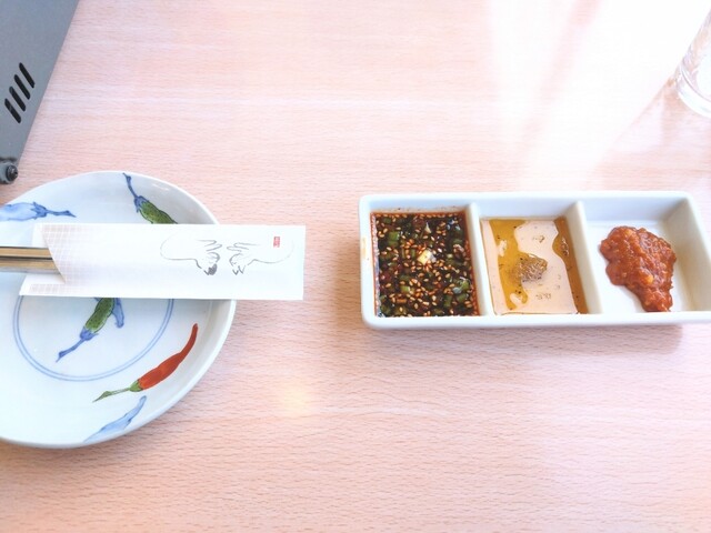 つけダレは3種類あり、ピリ辛でどれも美味しかったです。
