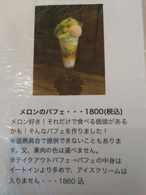 誰もいなかったので、早速フルクトランチとメロンパフェを注文しました。