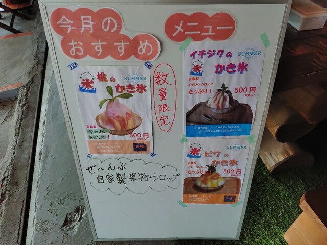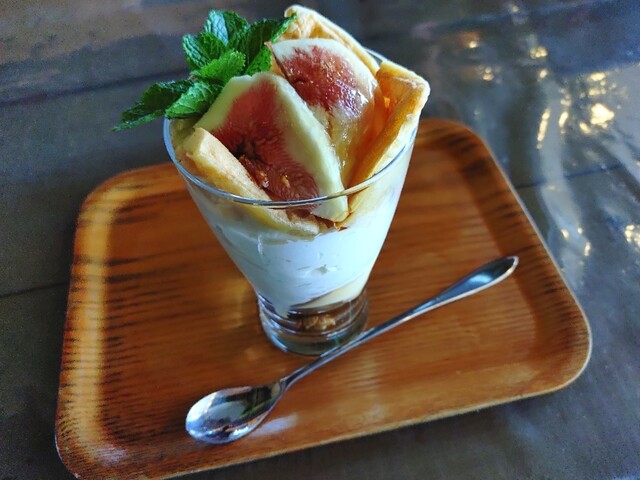 中に入って、パネルに貼ってあるメニュー写真を見て、いちじくパフェを