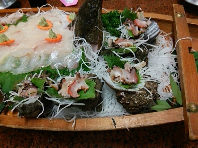 船盛にサザエや伊勢エビ、牡蠣、蛸飯などが次々に出され、どの料理もとても美味しかったです。