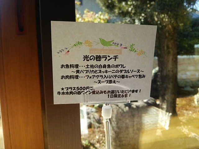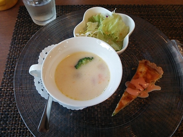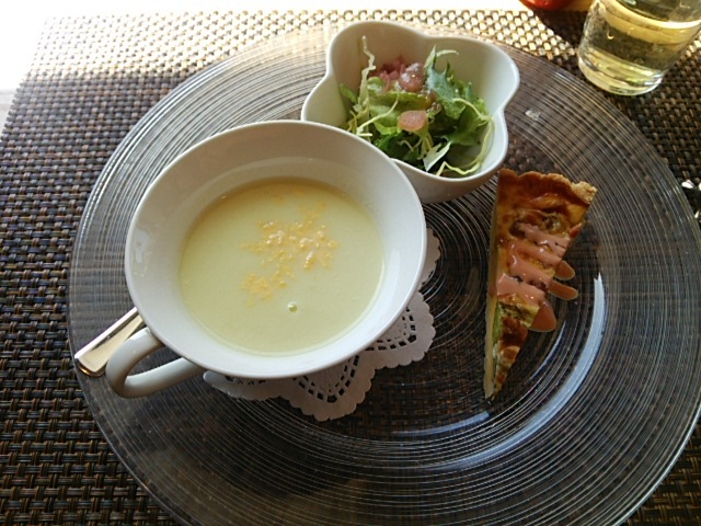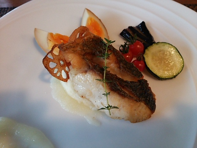 前菜(スープ、サラダ、キッシュ)魚料理(土佐の白身魚のポワレ)