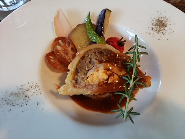 、肉料理(フォアグラ入りパテの春キャベツ包み)