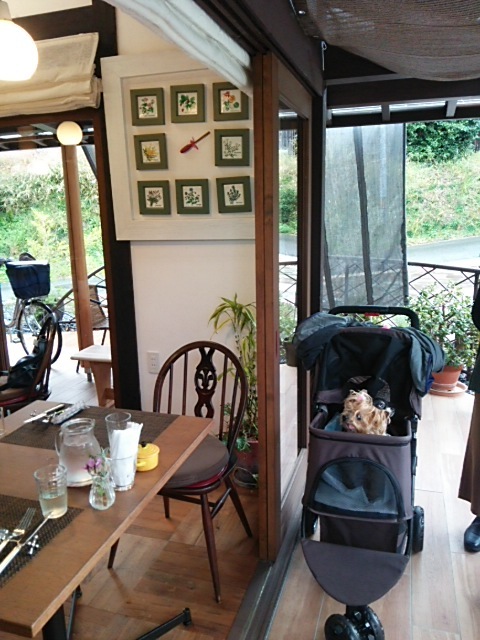 今回は、我が家の3わんこを連れて行ったので、テラス席とそのテラスに繋がる室内の席を空けていただいていました。