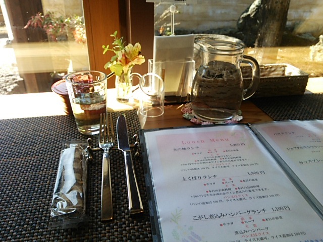 窓から庭を眺めながら、ゆっくりと美味しい料理や香り豊かなハーブティーをいただきました。