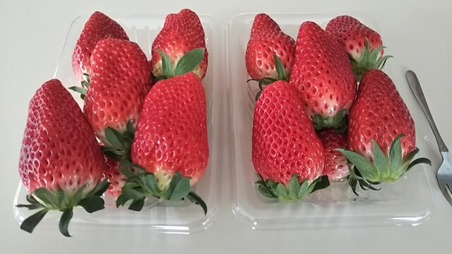 食べ終わる頃に持ち帰り用のいちごを息子さんが摘み取り持って来てくれました。そこからパックに詰めてもらうのですから新鮮。