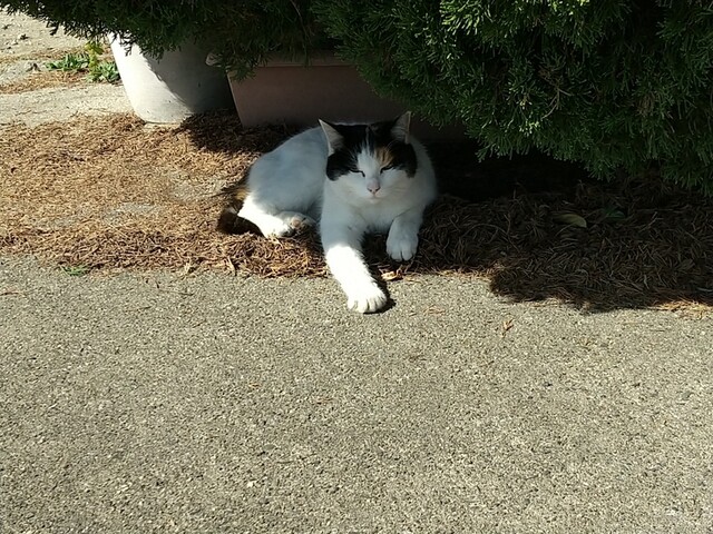 玄関前では看板猫のえびすちゃんが出迎えてくれました。