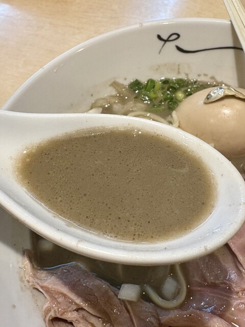 待つことしばし、煮干しが登場です。特製だけに肉で覆われていますが、濃グレーのスープが見えています。