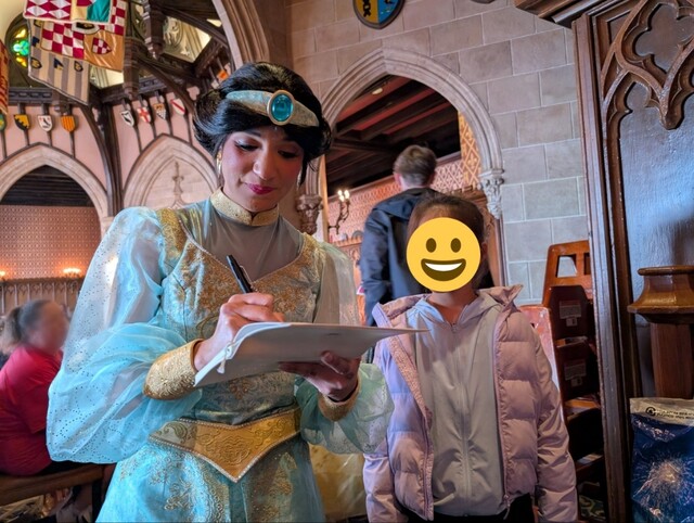 この日は、アリエル、オーロラ姫、ジャスミン、メリダが各テーブルを回りました。