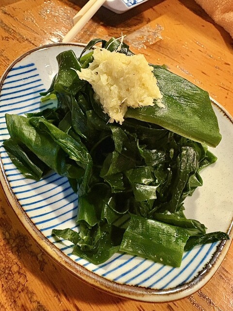 前回も頂きましたが、肉厚のワカメがお皿にたっぷりと盛られて提供されます。おろし生姜付きで、酢醤油で頂きました。肉厚ワカメは、歯応えが良く美味しく頂きました。