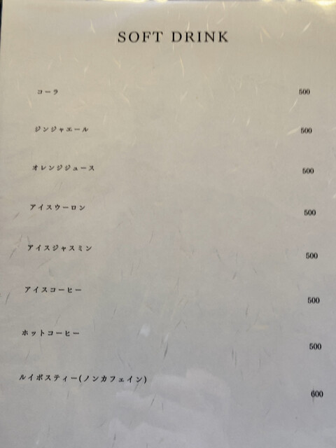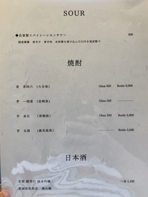テーブルの手前の席に案内され、メニューを拝見。今回の注文は以下をお願いしました。