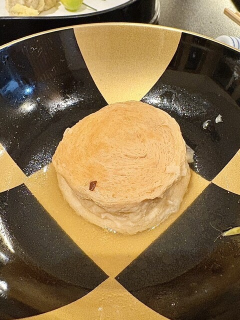 特に「お麩・蓮・椎茸・生姜」の4つは、豆富のソースと混ぜて、白和え状にして頂きます。巾着南京とは南瓜を磨り潰して巾着状に丸めたもので、南瓜の自然な甘さが際立つ一品。とにかく前菜からシンプルですが、いずれも素材の美味しさを十分に楽しめる、素晴らしいものでした。