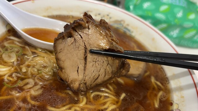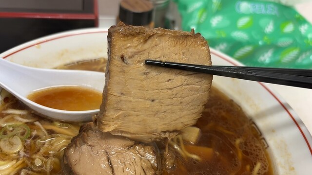 ・チャーシューが2枚から1枚へ。定番のモモチャーシューとホロホロの肩チャーシュー?からモモチャーシューの1枚。