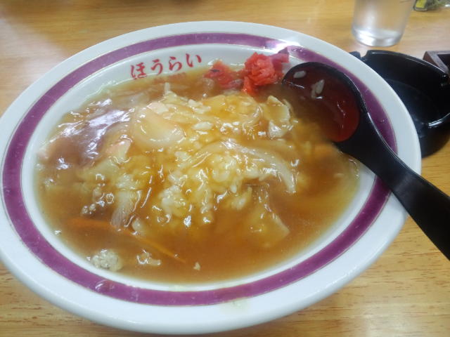 毎日の様にラーメン食ってる私が久しぶりに3日程食べてない!半分中毒症状がでて、しかも少し二日酔い気味!ここは「ほうらい」でしょうとばかりに、さっそくいってきました。かれこれ50年通ってるのかな。みなさんが地元のラーメンにとどめを刺す様に、私はこれです。もやしらーめん、チャンポンも旨いですね。カツ丼もたまに。オムライスがメニューから消えたのは少し残念ですが、ラーメン¥400也でこの旨さ。牛骨系のスープですが、結構あっさりしてて,後引くお味、くせになります。