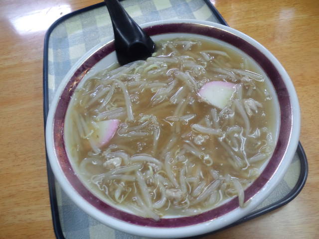 今日は久しぶりにもやしラーメン¥600を注文、なんか前より量がビミョーにふえた?相変わらずあつアツで旨い。スープはラーメンとは少し違うようだけど(良ー判りませんが)優しいお味。シャキシャキのもやしと麺のバランスが絶妙。もう少しスープの量が多いともっと好き。