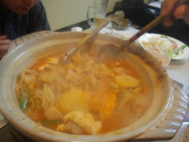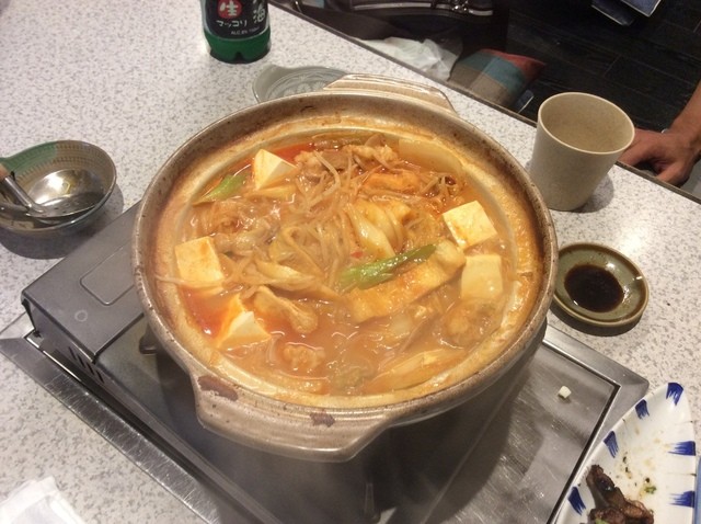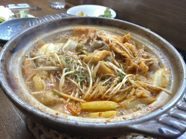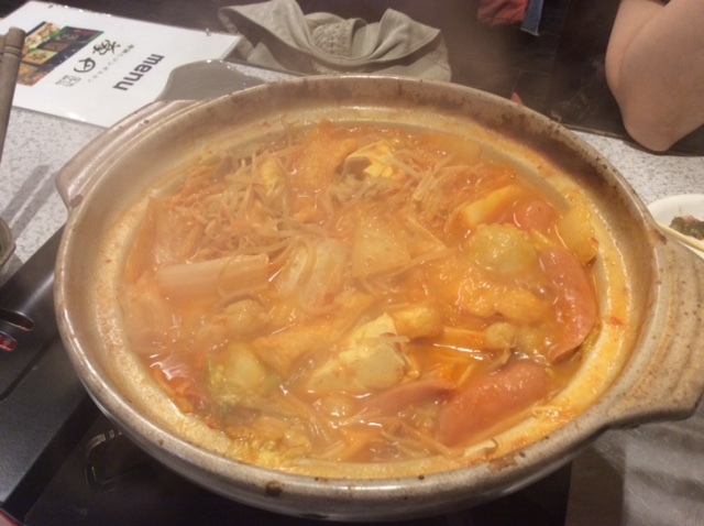 鍋は「キムチ鍋」のような(キムチは入ってないので)真っ赤っか。程よい辛さと旨味がたっぷり。