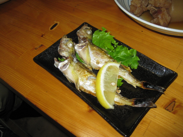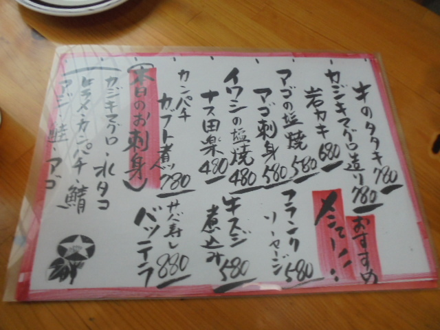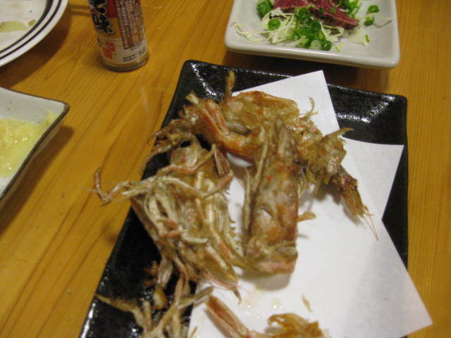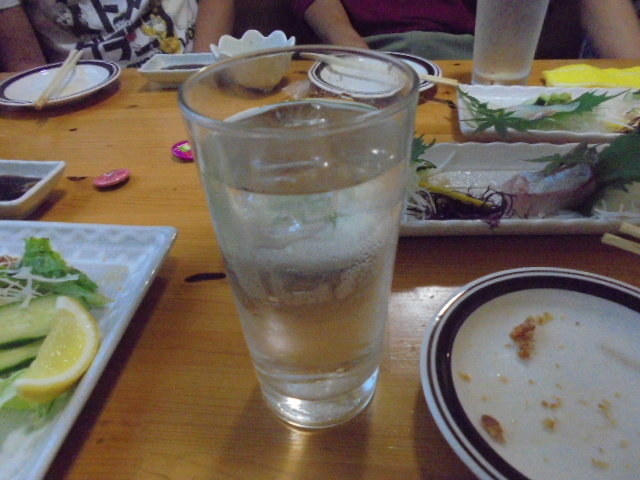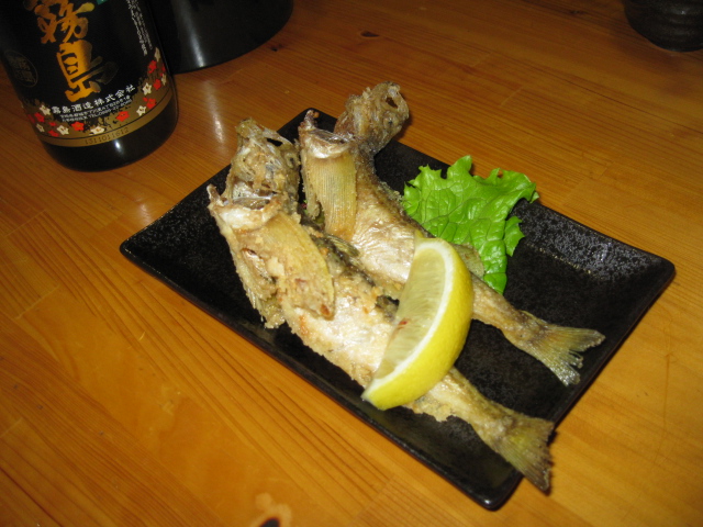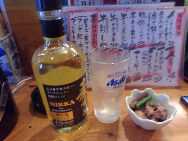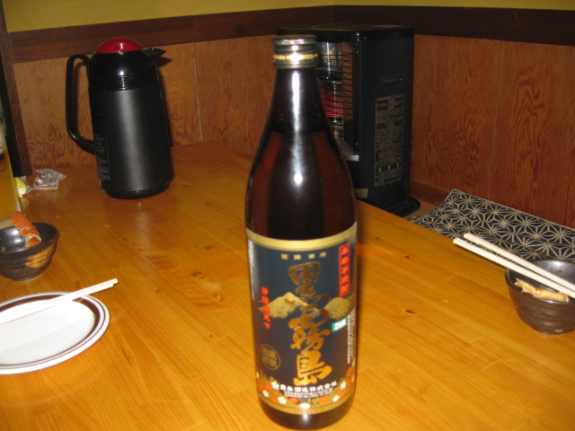 やはり混んでる割にすぐ出て来た「白ハタ」食べながら(調理してあってもダメな物はダメな私ですが(魚好きには多分判らん)良い加減にカリッと揚がってて美味しかったです))ビールをぐいぐい!私はビールは1杯で「ごちそーさん」なので焼酎の「黒霧島」をボトルで発注。