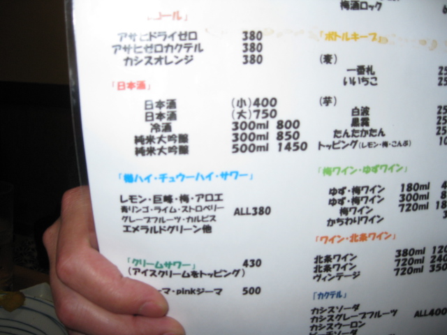 前回と違い今回は老(私ですが)若男女7名での飲み会。