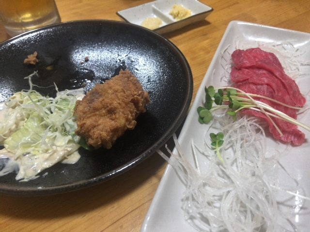 酒を飲まずに食べたから揚げとスペアリブ・牛のたたきは最高のお味。